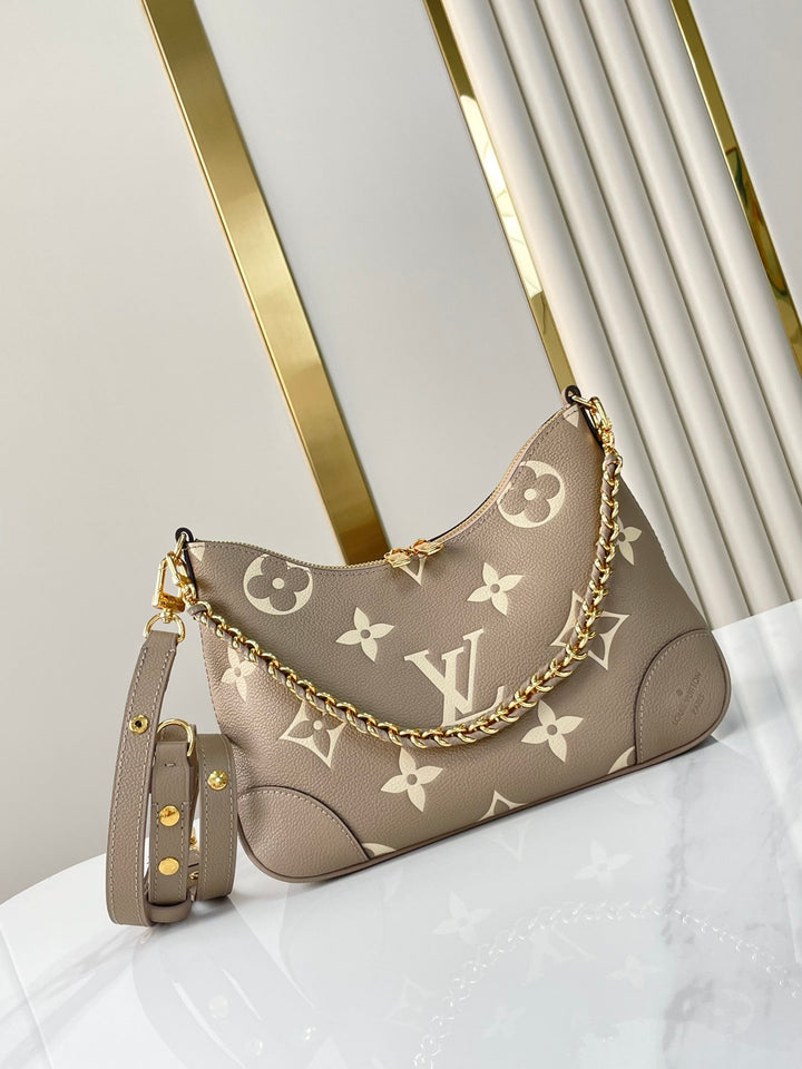 BOULOGNE 29 IN DOVE GRAY AND CREAM MONOGRAM EMPREINTE LEATHER GOLD HARDWARE