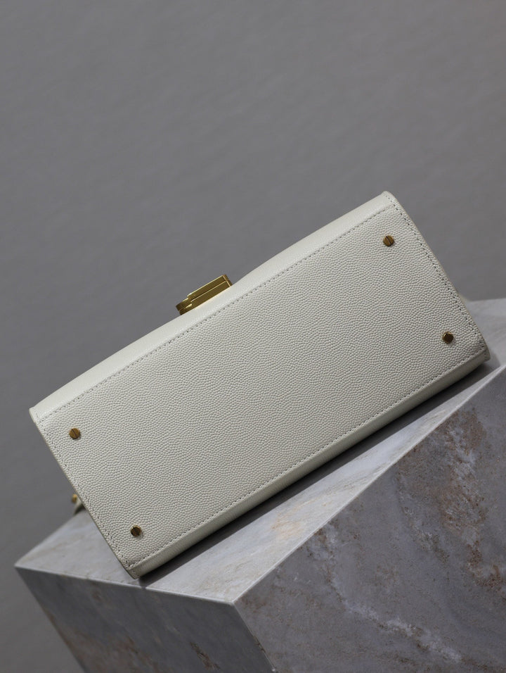 CASSANDRA TOP HANDLE BAG 24 IN WHITE CALFSKIN GOLD HARDWARE
