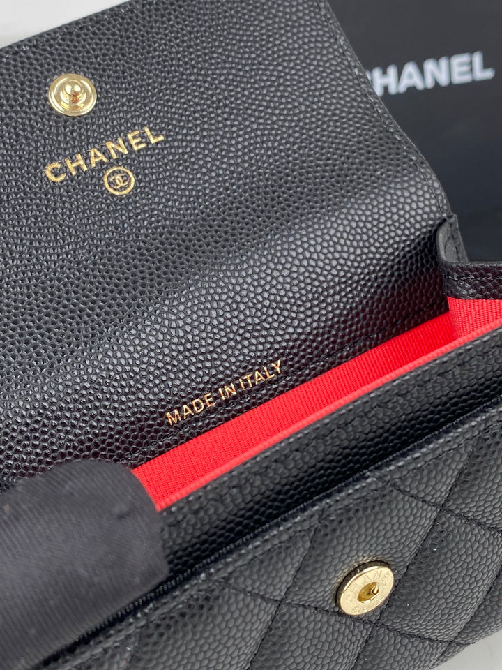 CC FLAP CARD HOLDER 11 BLACK GRAINED CALFSKIN GOLD ICON