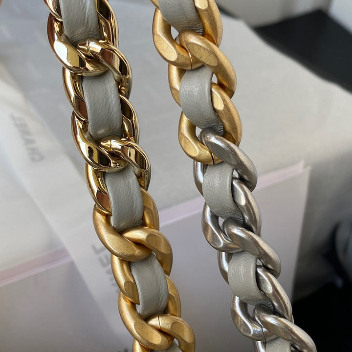 CC LARGE 30 FLAP BAG IN LIGHT GREY LAMBSKIN