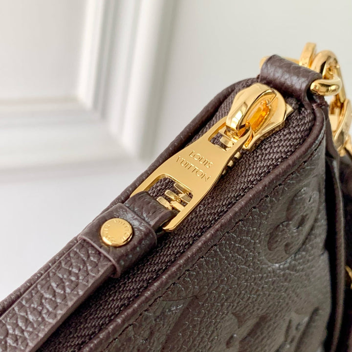 EASY POUCH ON STRAP 19 IN DARK BROWN MONOGRAM EMBOSSED LOGO CALFSKIN