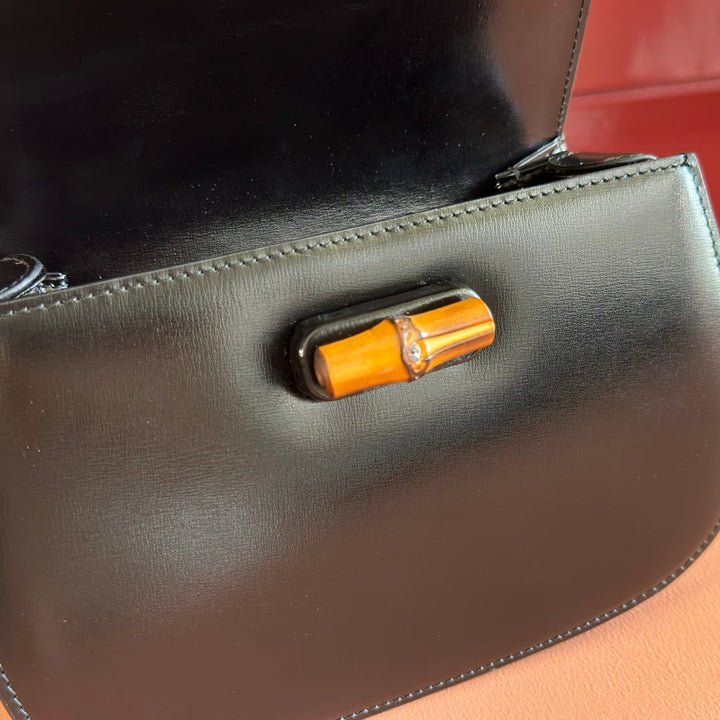 GUCCI BAMBOO MINI BAG 21 BLACK IN CALFSKIN GOLD HARDWARE