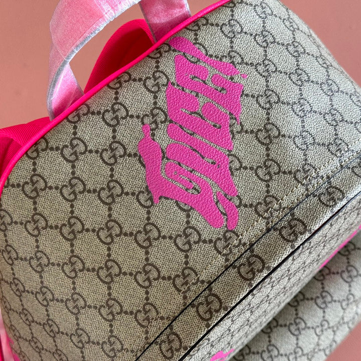 GUCCI MEDIUM BACKPACK WITH PRINT 41 PINK IN CALFSKIN