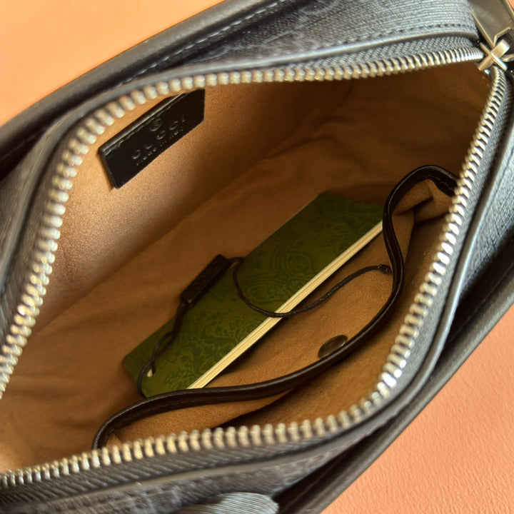 GUCCI MINI BAG 22 GREY AND BLACK WITH INTERLOCKING G IN CANVAS