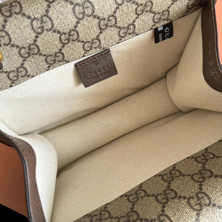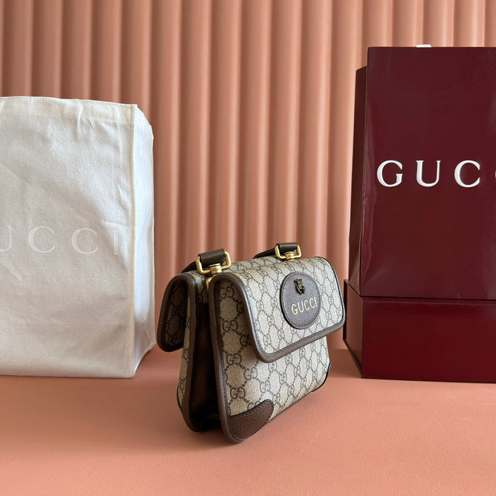 GUCCI NEO VINTAGE TIGER HEAD CROSSBODY BAG 22 IN CANVAS BROWN LEATHER TRIM