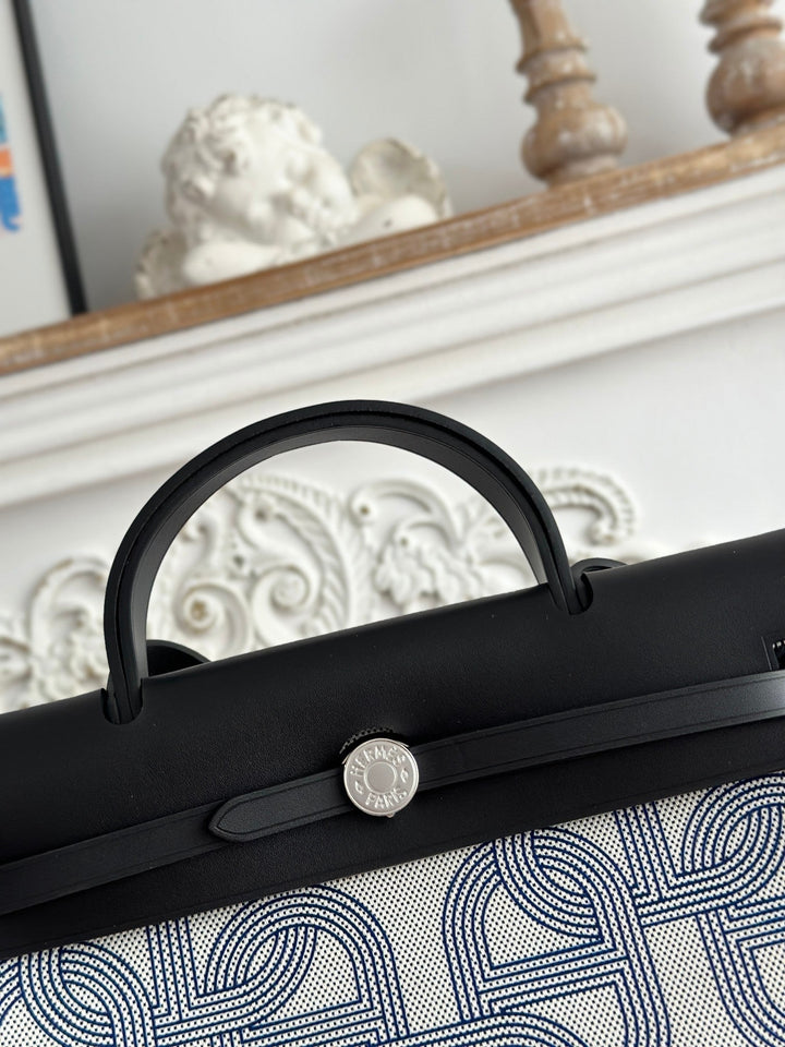 HERBAG ZIP 31 LAQUERED BAG IN OFF-WHITE MIX BLUE H PLUME CANVAS