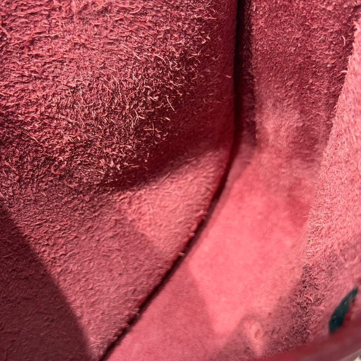 HERMES 25S MINI EVELYNE 18 IN BURGUNDY PATTERNED STRAP CALFSKIN SILVER HARDWARE