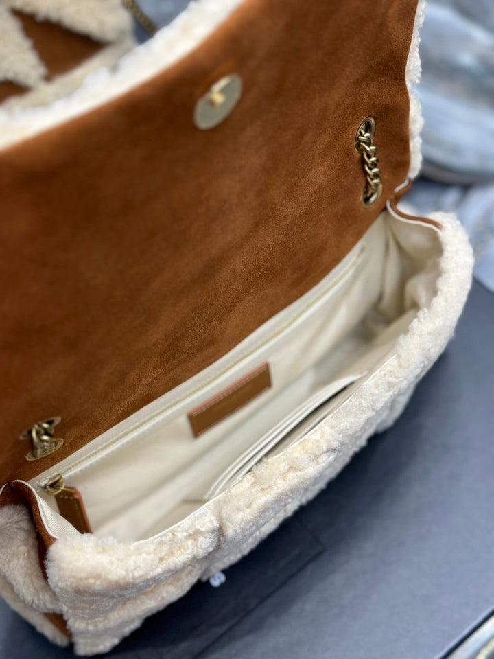 JAMIE BAG 25 IN BROWN SUEDE MIX BEIGE SHEARLING GOLD HARDWARE