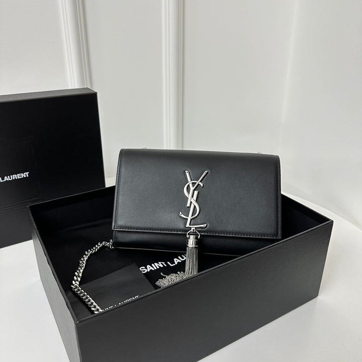 KATE TASSEL 20 BLACK CALFSKIN WITH SILVER LOGO