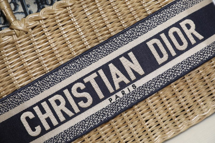 LARGE 28 BASKET BAG IN BLACK OBLIQUE JACQUARD AND BEIGE WICKER
