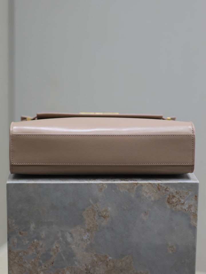MANHATTAN MEDIUM 29 IN DARK BEIGE SMOOTH CALFSKIN GOLD BUCKLE