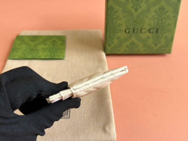 MARMONT QUILTED CARD HOLDER 10 IN LIGHT YELLOW CALFSKIN