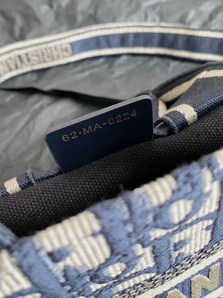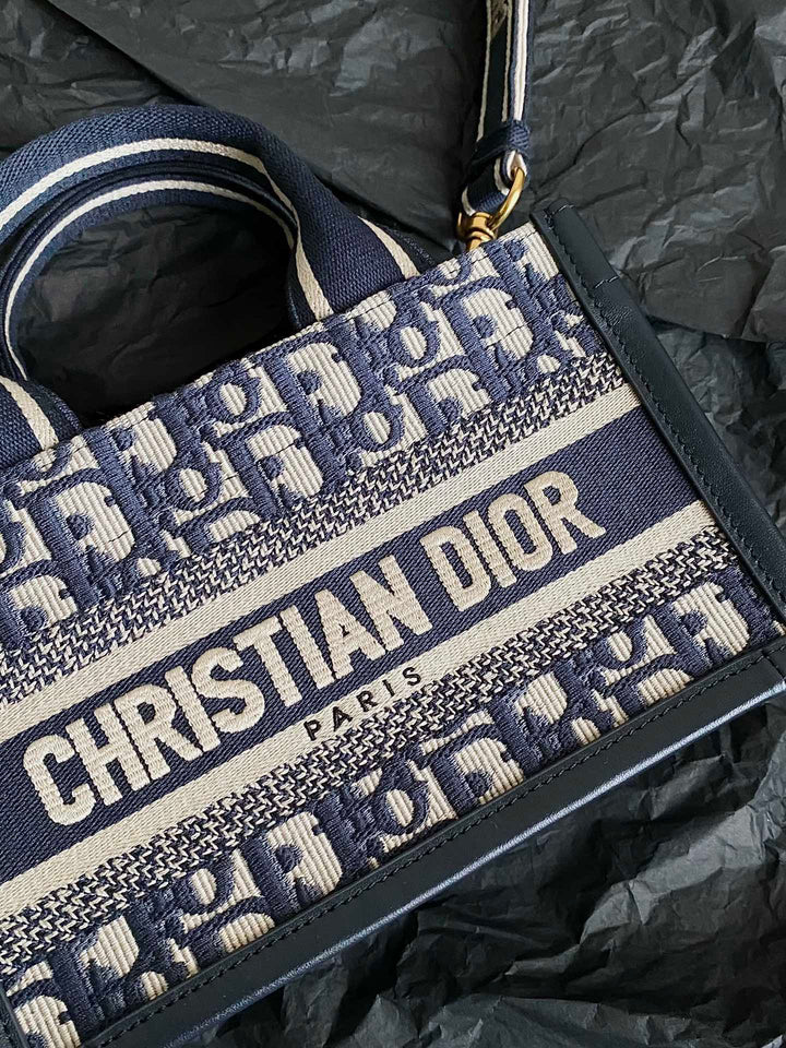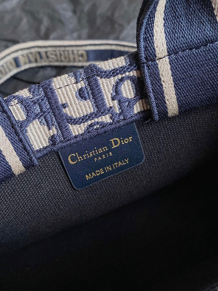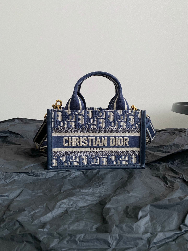 MINI BOOK TOTE 21 BLUE OBLIQUE EMBROIDERY