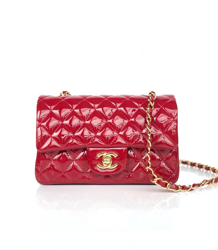 MINI RECTANGLE FLAP BAG 20CM RED PATENT CALFSKIN GOLD HARDWARE