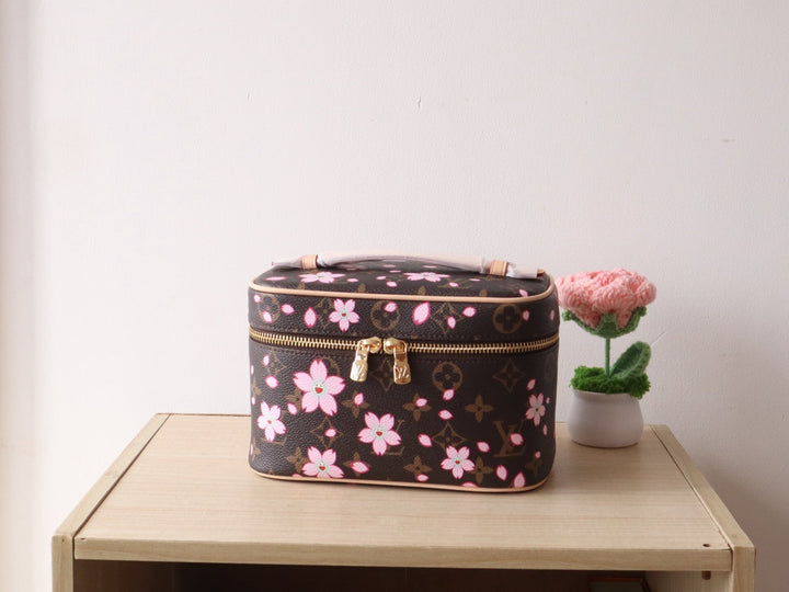 NICE MINI TOILETRY BAG 20 IN SAKURA BROWN MONOGRAM COATED CANVAS