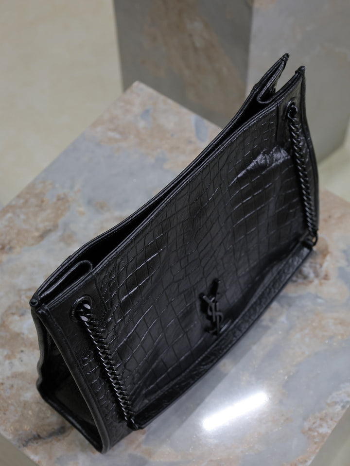 NIKI SHOPPING BAG 33 IN BLACK CROCODILE-EMBOSSED CALFSKIN