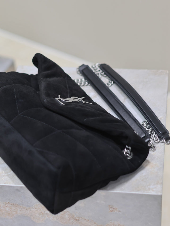 PUFFER SMALL 29 IN BLACK SUEDE SILVER HARDWARE