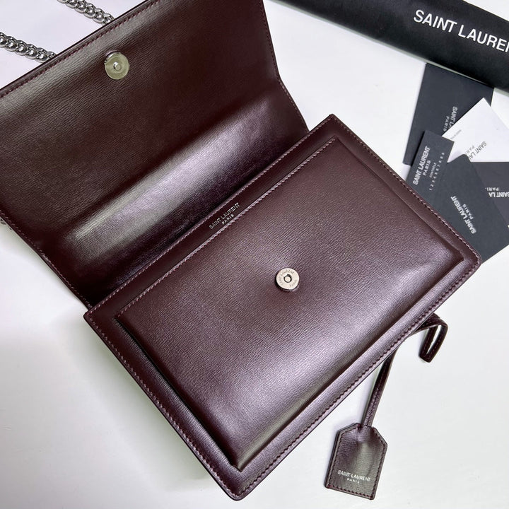 SUNSET MEDIUM 22 IN MAROON CALFSKIN SILVER HARDWARE