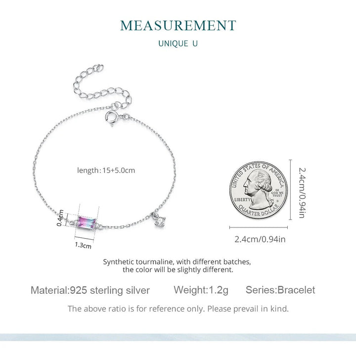 This bracelet is delicate and unique, small and cute, shining zircon and gradient synthetic tourmaline. Just let the bright and colourful bracelet adds more color to your life.