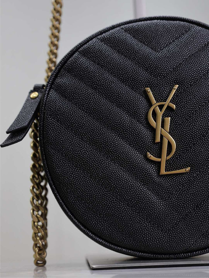 VINYLE SMALL ROUND BAG 17 IN BLACK CAVIAR LEATHER GOLD HARDWARE
