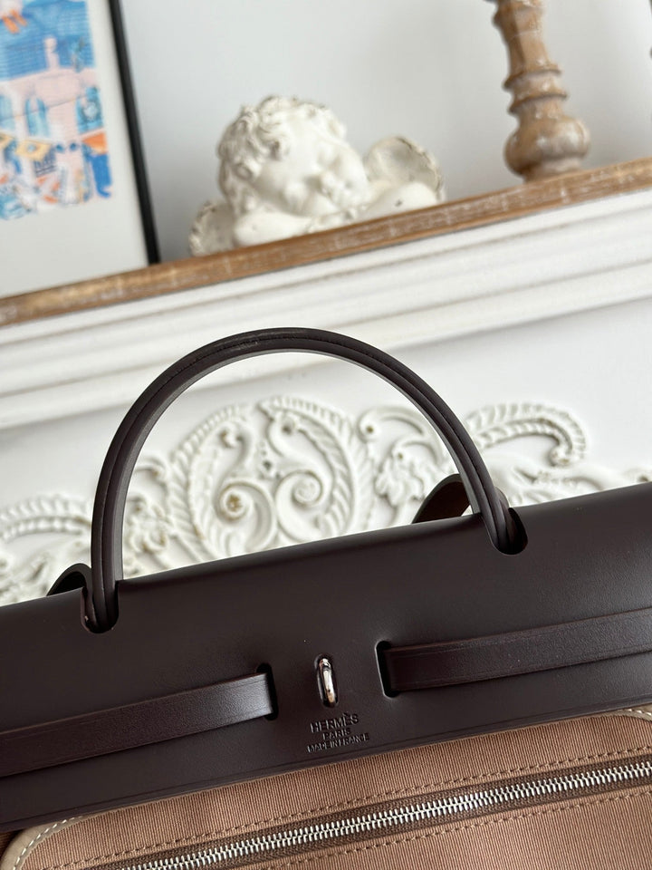 ZIP CABINE 31 BAG IN CHOCOLATE BROWN CANVAS AND BLACK CALFSKIN