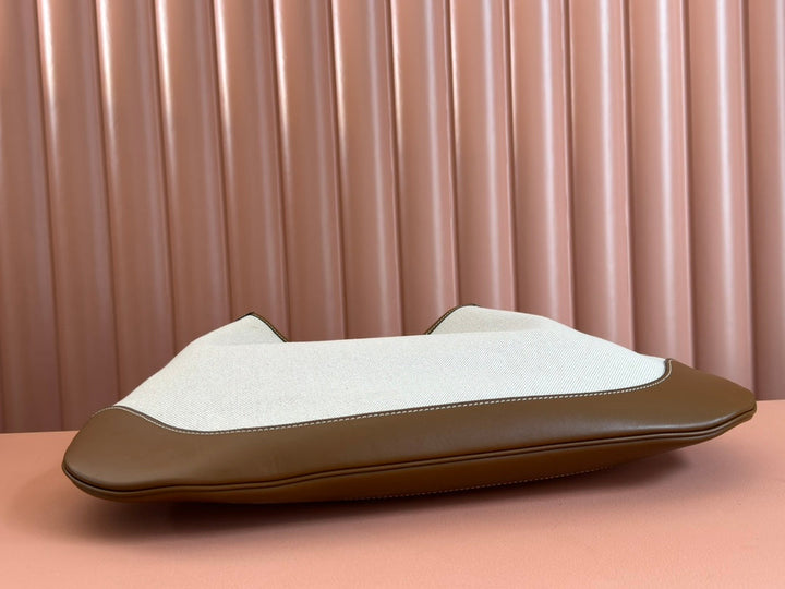 B LARGE SHOULDER BAG 49 IN NATURAL CANVAS AND BROWN CALFSKIN