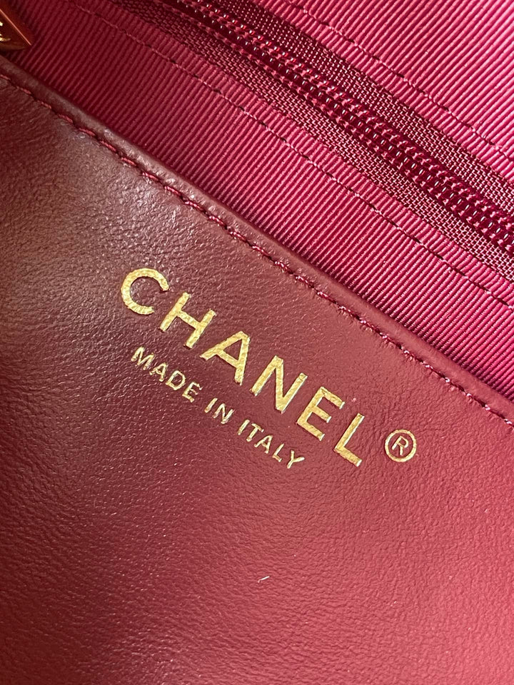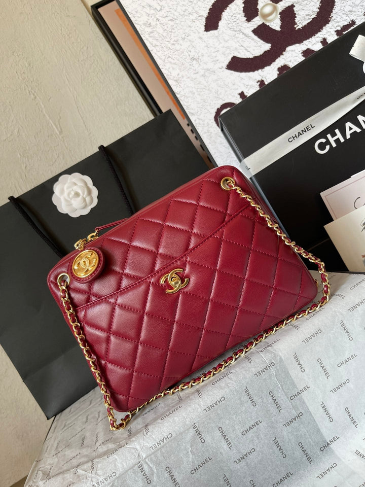 CAMERA BAG 24 IN RED QUILTED LAMBSKIN DOUBLE C GOLD COIN
