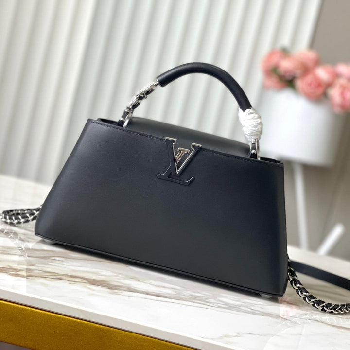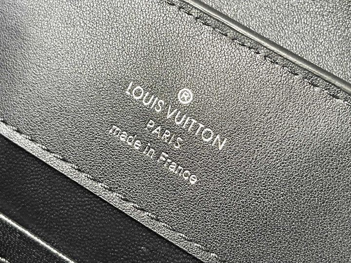 CAPUCINES EAST-WEST 30 IN BLACK SHEEPSKIN CRYSTAL AND SILVER HARDWARE