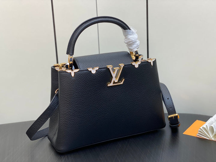 CAPUCINES MM 31 BLACK TAURILLON GOLD HARDWARE
