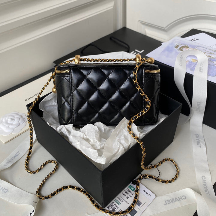 CC VANITY CASE 19 BLACK LAMBSKIN GOLD HARDWARE