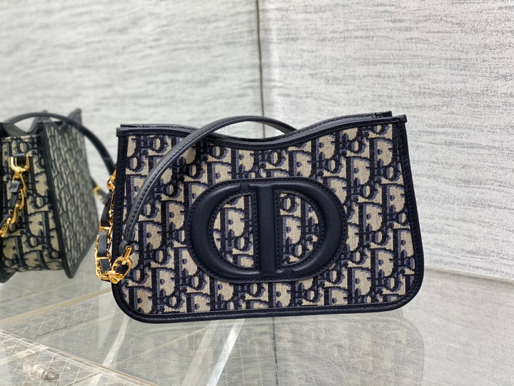 CD SIGNATURE HOBO 23.5CM BLUE OBLIQUE EMBROIDERY