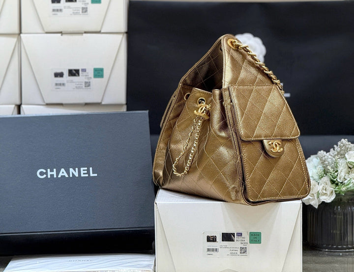 CHANEL 25 MEDIUM HANDBAG IN GOLDEN BROWN CALFSKIN WITH GOLD HARDWARE