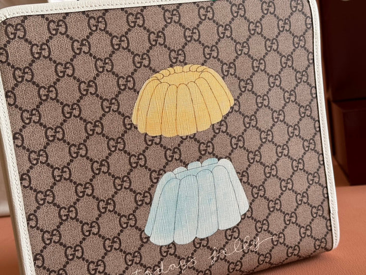 CHILDREN'S PRINTED BIG CAT TOTE BAG 28.5 IN BEIGE AND DARK BROWN GG CANVAS WHITE TRIM