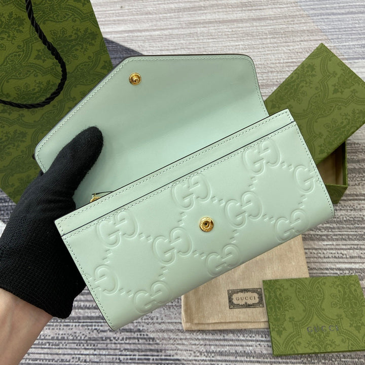 CONTINENTAL WALLET 19 IN MINT GREEN EMBOSSED CALFSKIN GOLD HARDWARE