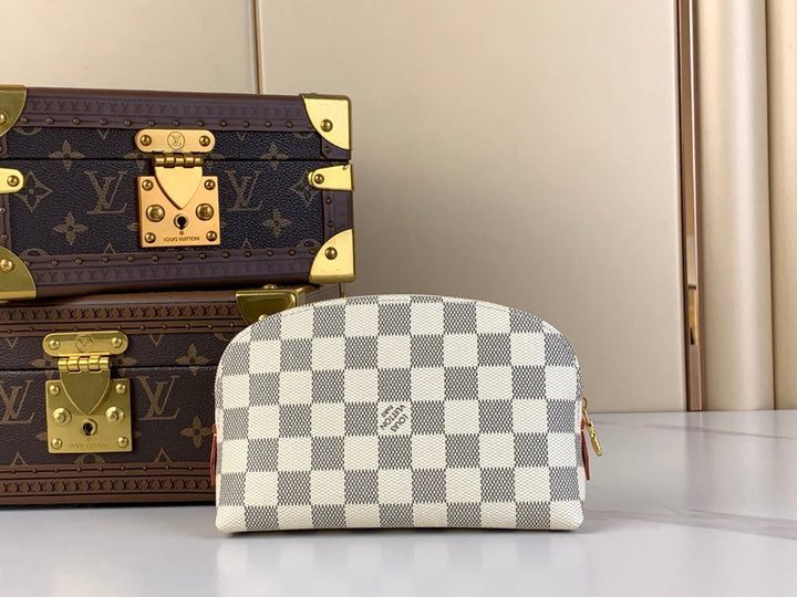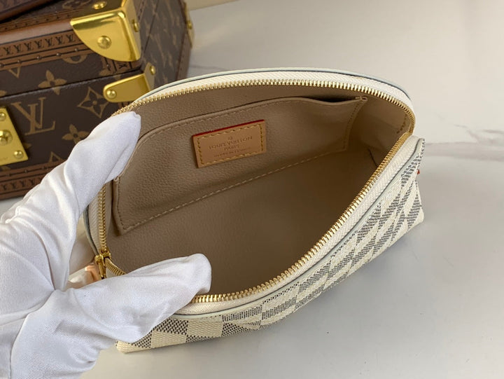 COSMETIC POUCH PM 19 IN WHITE GRAY DAMIER AZUR CANVAS