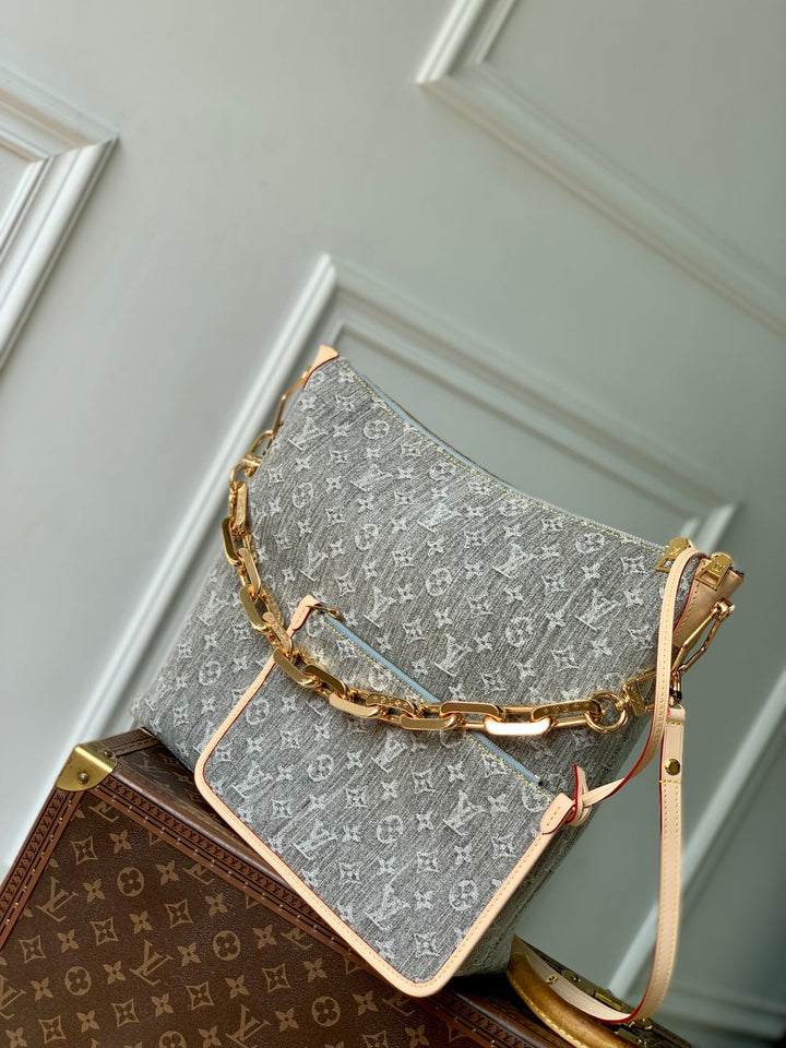 COUSSIN HOBO MM 38 IN GREY MONOGRAM DENIM