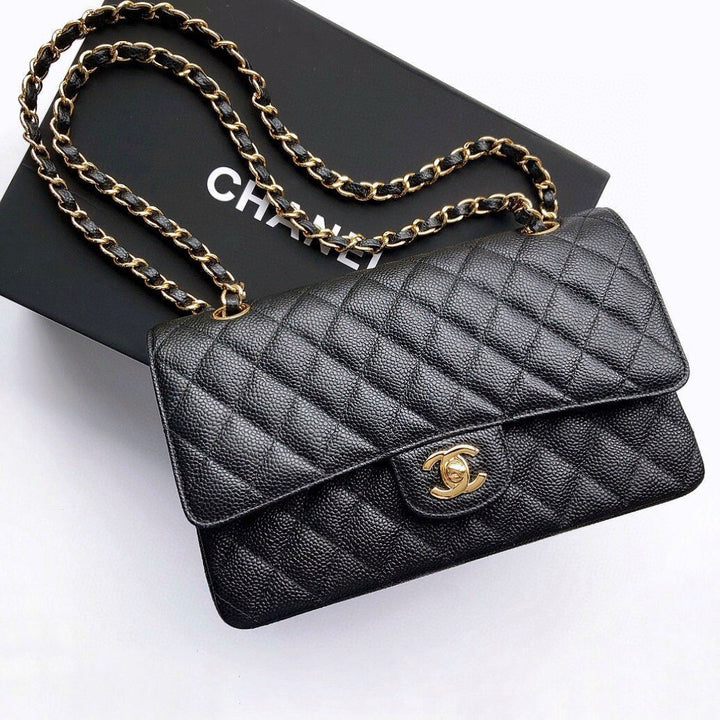 FLAP BAG 25 IN BLACK CAVIAR LEATHER GOLD HARDWARE
