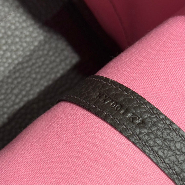 GARDEN PARTY 30CM IN RED TOILETS COTTON CANVAS AND DARK BROWN CALFSKIN PINK ON SIDE OTHER