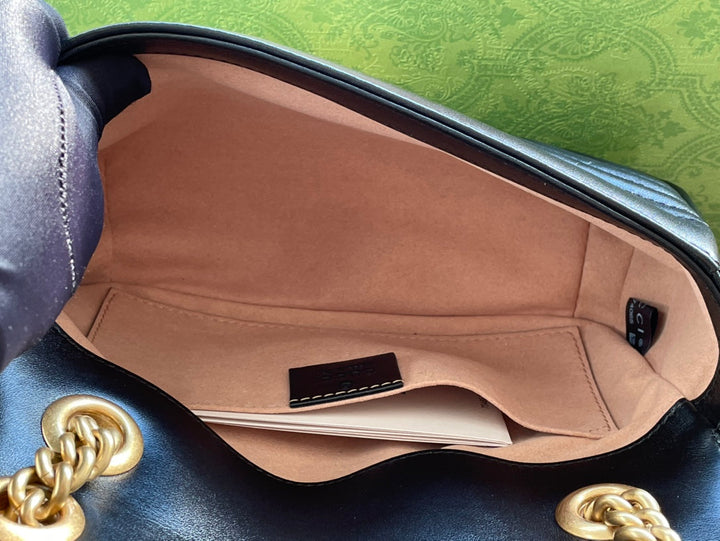 GG MARMONT MATELASSÉ SMALL 22 BAG BLACK CALFSKIN