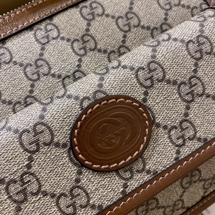 GG SMALL 21 CROSSBODY BAG WITH TAG IN BEIGE CANVAS AND BROWN CALFSKIN