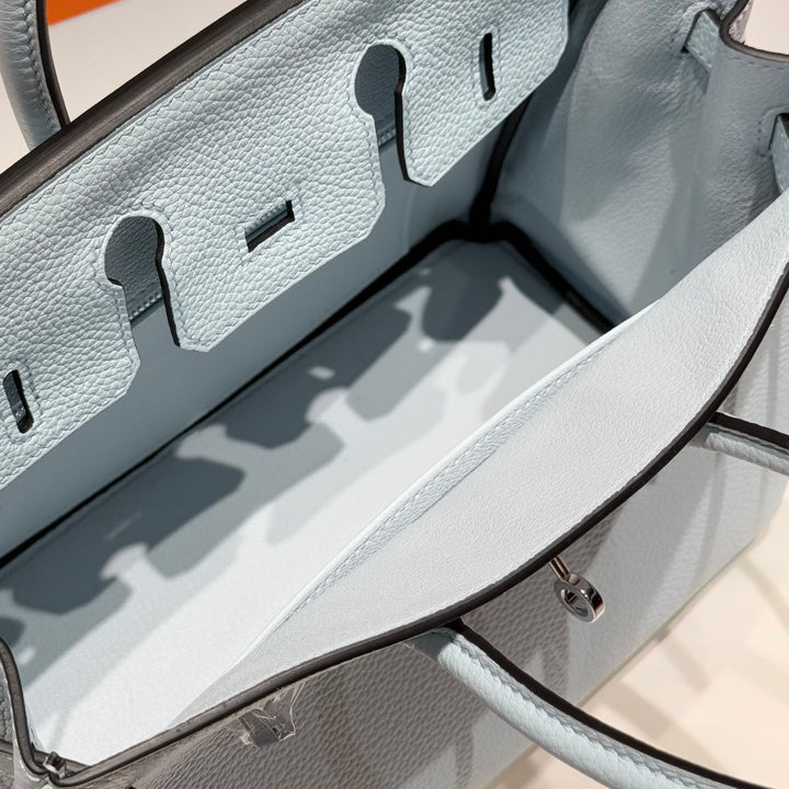 HERMES 25S MEDIUM BIRKIN 25 IN CLOUD BLUE CALFSKIN SILVER HARDWARE