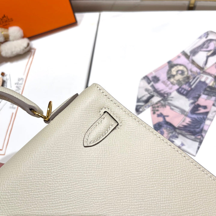 HM KELLY 25CM WHITE EPSOM LEATHER GOLD HARDWARE