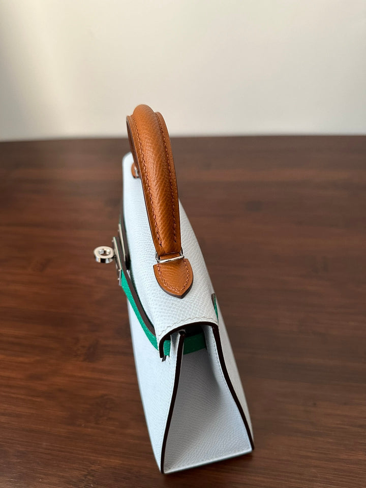 HM KELLY MINI 20 CLOUD BLUE EPSOM SILVER HARDWARE