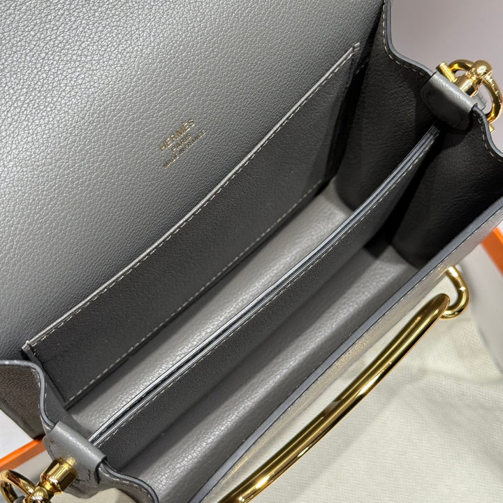 HM ROULIS 18 MINI BAG IN DARK GREY CALFSKIN GOLD-TONE HARDWARE