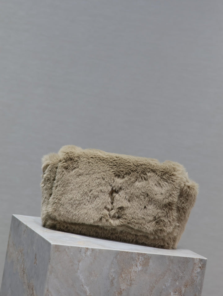 KATE SMALL BAG 22 IN ECRU BEIGE RABBIT FUR GOLD CHAIN