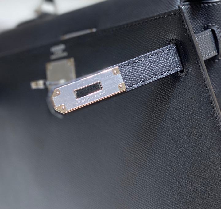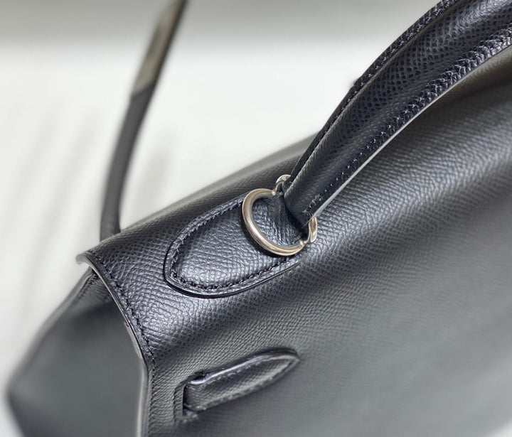 KELLY 28CM IN NOIR EPSOM CALFSKIN SILVER HARDWARE