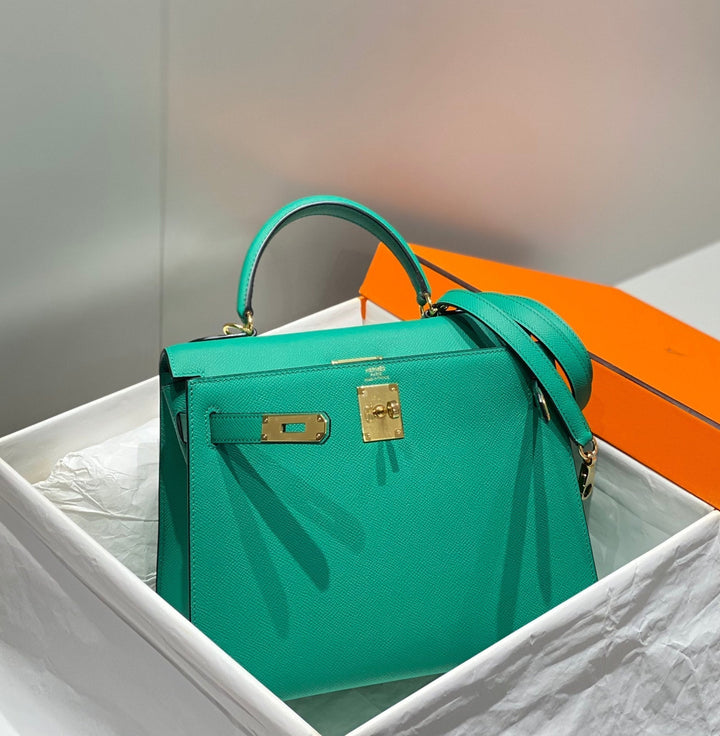 KELLY 28CM IN VERT VERTIGO EPSOM CALFSKIN GOLD HARDWARE