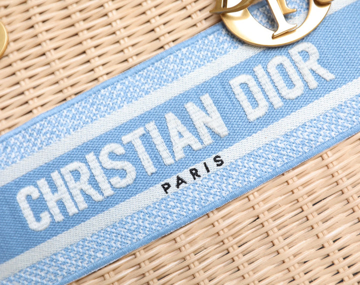 LADY 24 BASKET BAG IN BLUE OBLIQUE JACQUARD MIX BEIGE WICKER