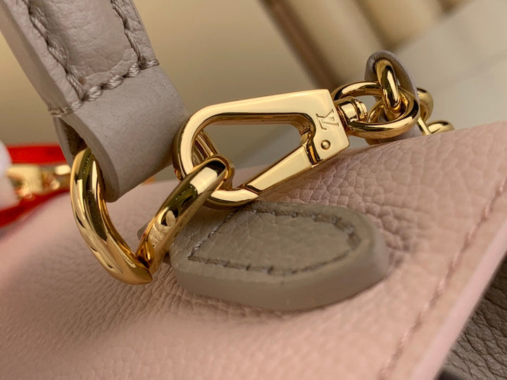 LOCKME EVER MINI 23 IN KHAKI BROWN MIX LIGHT PINK CALFSKIN GOLD HARDWARE