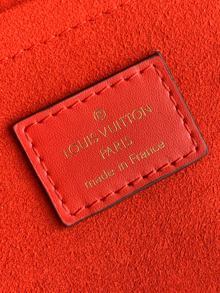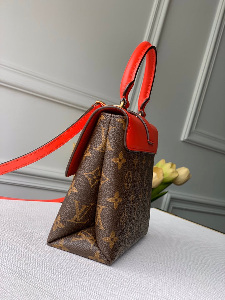 LOCKY BB 21 IN BROWN MONOGRAM CANVAS AND RED CALFSKIN GOLD BUCKLE